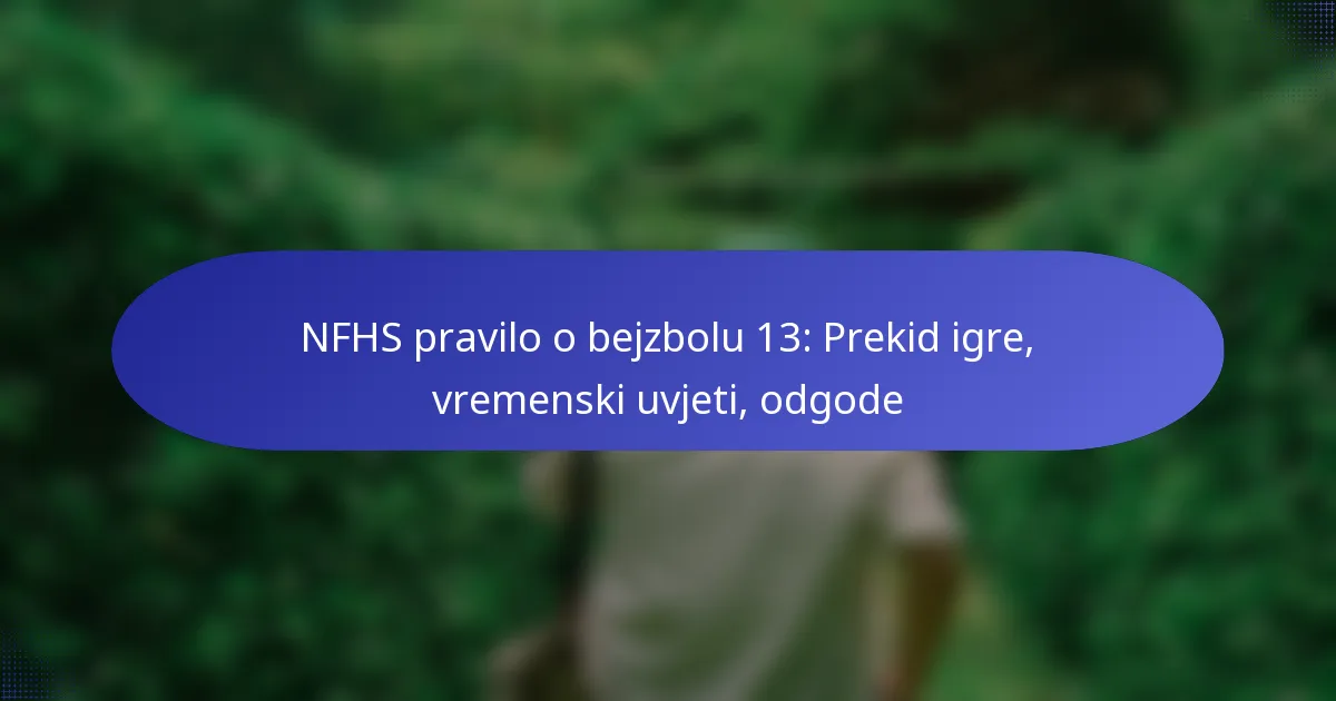 NFHS pravilo o bejzbolu 13 pruža osnovne smjernice za upravljanje prekidima igre uzrokovanim vremenskim uvjetima, prioritetizirajući sigurnost igrača i integritet igre. Sudci su zaduženi za procjenu vremenskih…